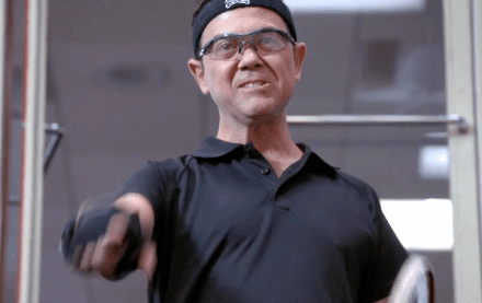 Joe Lo Truglio makes a throat-cutting gesture in sports passion GIF