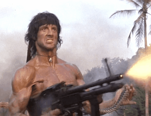 Rambo shoots a machine gun GIF