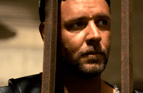 Russell Crowe hides in fear GIF