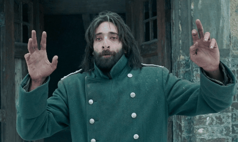 Adrien Brody raises his hands GIF