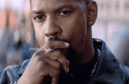Denzel Washington smokes and stares GIF
