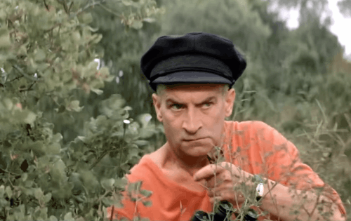 Louis de Funès watches through binoculars GIF