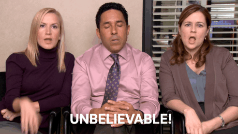 Oscar Martinez, Angela Martin, and Pam Beesly say, Unbelievable! GIF