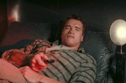 Bored Arnold Schwarzenegger watches TV GIF