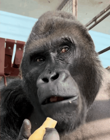 A gorilla chews thoughtfully GIF