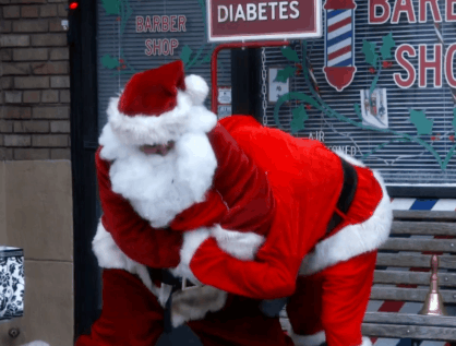 Two Santa Clauses fight GIF
