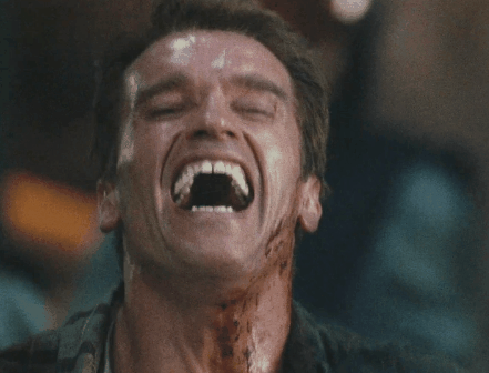 Arnold Schwarzenegger bursts into laughter GIF